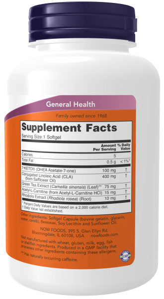 WITH CLA AND MORE: NOW® 7-KETO® LeanGels™ also includes CLA, Green Tea Extract, Acetyl-L-Carnitine, and Rhodiola extract as complements to 7-KETO®.